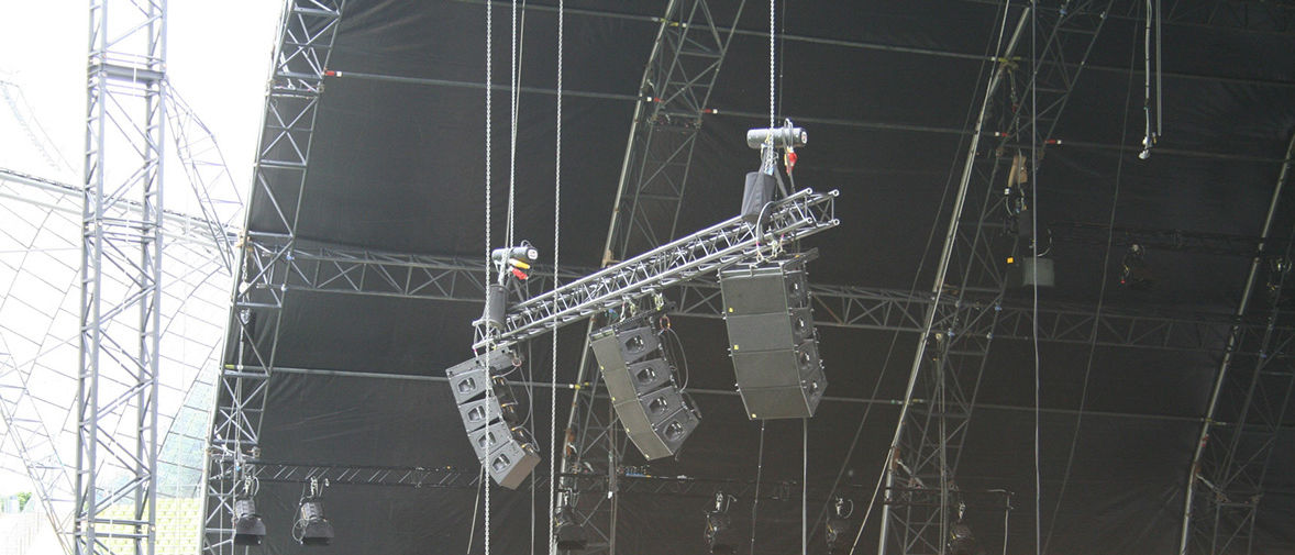 Ein solches Setup erfordert zwar einiges an Überlegung und Finesse, aber es ist im Vergleich zu dem vor 30 Jahren errichteten Tribünendach nicht gerade eine Pionierleistung, oder? "Nein, aber an einem bestimmten Punkt des Programms sollten alle drei Orchester das berühmte 'Also sprach Zarathustra' von Richard Strauss intonieren, wobei sich die Musik buchstäblich über die Bühne ausbreitete, als sich das Spiel Akkord für Akkord von einem Orchester zum nächsten bewegte. Wir wollten das Klangbild von Orchester zu Orchester bewegen, damit das gesamte Publikum in der Lage war, diesen Effekt so deutlich mitzuerleben, wie diejenigen, die direkt vor der Bühne sitzen. Im wahrsten Sinne des Wortes ein ständig wachsender 'Wall of Sound'." Rudolf Pirc von Neumann & Mueller und Zuleeg verglichen das Klangbild mit einem Dreieck aus aufgespanntem Stoff, bei dem sich ein Eckpunkt auf der Bühne befindet und die anderen beiden bis in die äußersten Ecken des Publikums reichen, sodass jeder einzelne Sitzplatz davon abgedeckt wird. Zuleeg fährt fort: "Indem wir die Delay-Konfigurationen vorsichtig zwischen den L/M/R-Spalten des J-Serie-Systems verschoben und dies mit einem komplexen Delay-Netzwerk aus Q-Serie-Lautsprechern zur Deckung brachten, konnten wir den Ankerpunkt des Musikprogramms auf der zentralen Bühne von einem Orchester zum nächsten führen, so dass sich die Musik von 'Zarathustra' mit bewegte."